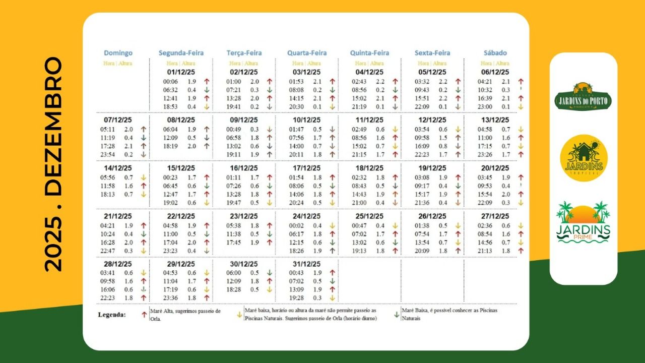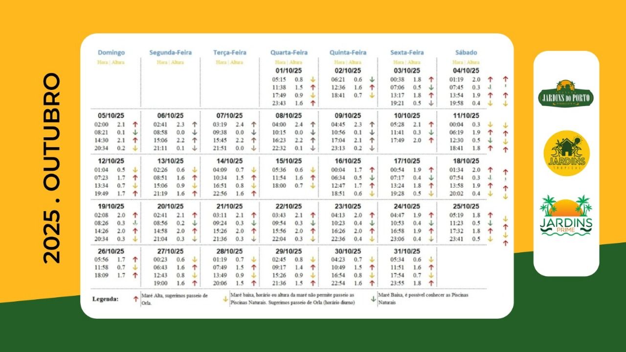 • Seta Amarela: Maré baixa, horário ou altura da maré não permite passeio as piscinas naturais. Sugerimos passeio de orla;